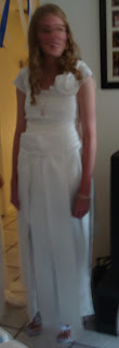 And draped it for the skirt. We used much masking tape and some safety pins to hold the dress together.